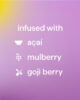 • Infundido con acai, bayas de goji y mora.