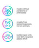 • Esta botella tuvo una vida pasada. La botella (menos la tapa) está hecha con un 86 % de plástico reciclado (PCR).
